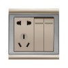 墙壁开关插座是一种结构简单,应用十分广泛的电器开关,是一种能随意组合,极具装饰效果的墙壁开关。外观是长条形的,分大、中、小型号,其功能件(开关、插座、电话、电视、电脑)与面板可以随意组合。