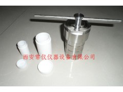 2、确保釜体下垫片位置正确(凸起面向下),然后放入聚四氟乙烯衬套和上垫片,先拧紧釜盖,然后用钢棒把釜盖旋扭拧紧为止。